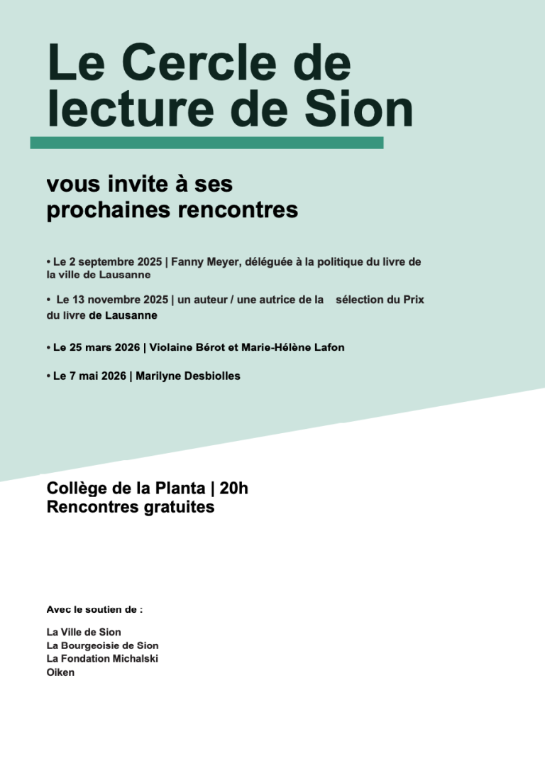 Le cercle de lecture de Sion encourage à une pratique de la lecture régulière grâce à la lecture d'une oeuvre de qualité et la rencontre d'un écrivain.